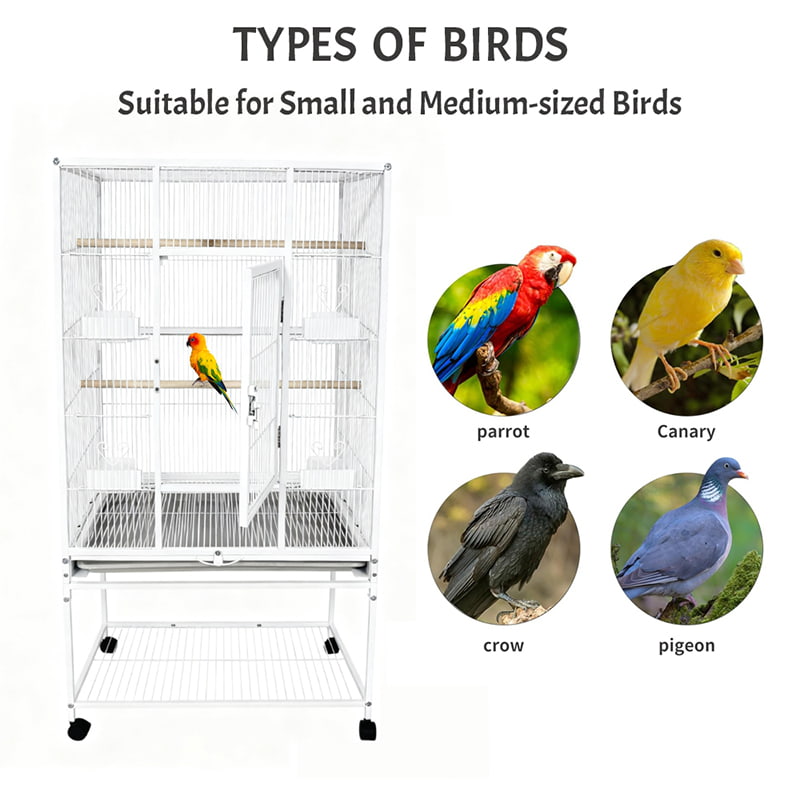3. 宽敞舒适的居住环境:笼子空间充足,适合中小型鸟类,可容纳2-3只伴侣鸟,例如虎皮鹦鹉和爱情鸟,营造和谐的居住环境。