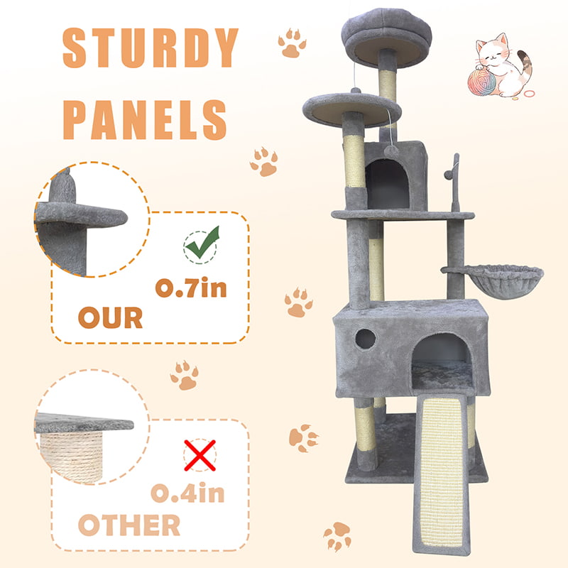 1. 科学分层布局:独立剑麻抓柱与阶梯式平台分区清晰,幼猫与成猫皆可轻松攀爬。顶层设置开放式观景平台,满足猫咪登高远望的本能。