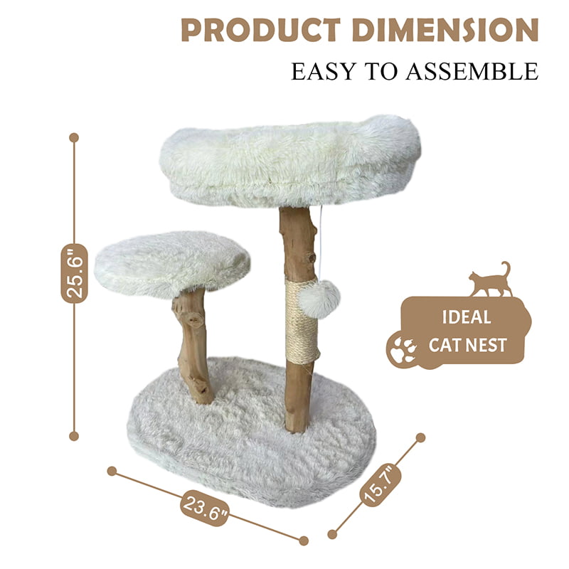 白色可爱室内小猫猫树舒适现代猫塔公寓带木质树枝