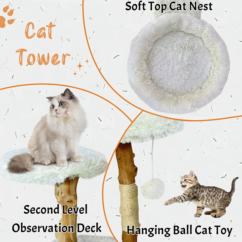2. 释放猫咪天性:配备剑麻绳猫抓柱和悬挂式玩具球,满足猫咪抓挠玩耍的自然天性,同时还能保护家具。
