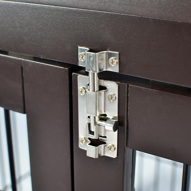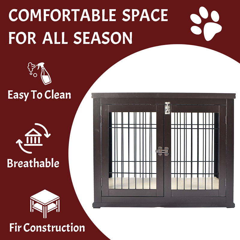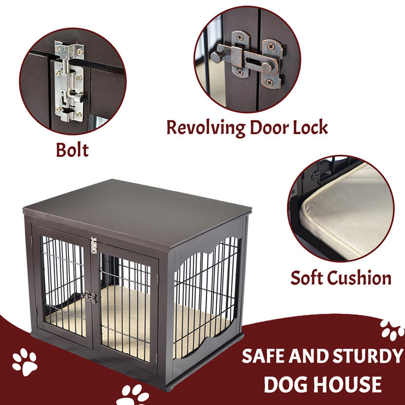 1.安全无忧的设计:家具式狗笼精选木材和低碳钢丝,配有双层安全门锁,全方位保护宠物安全。