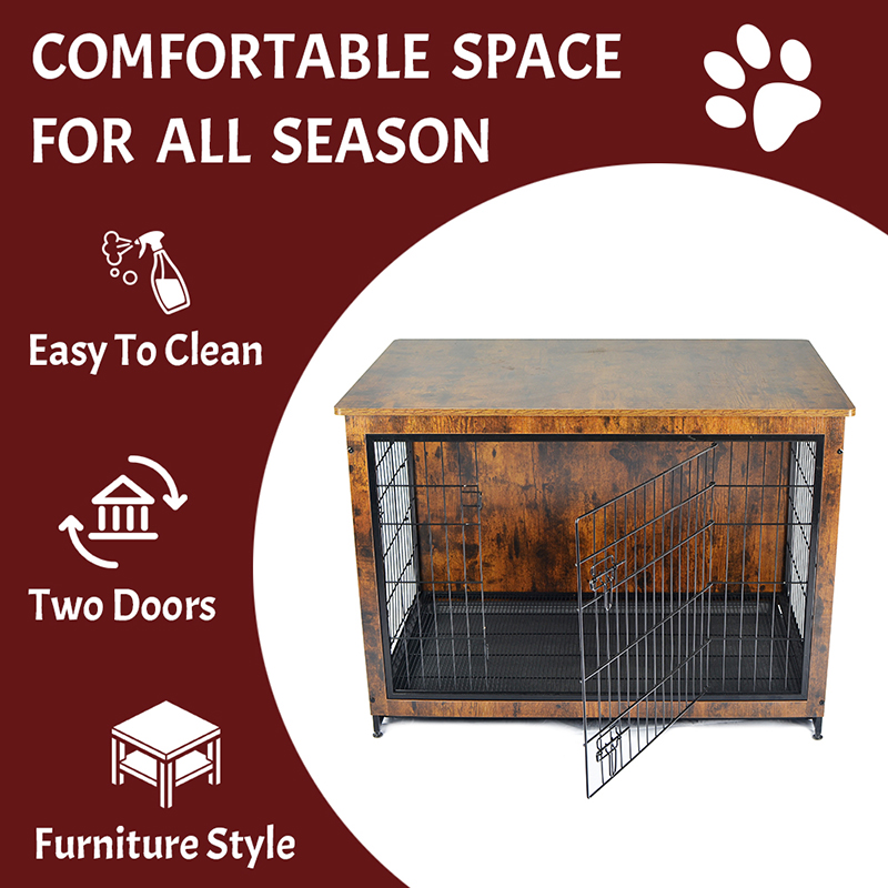 1.安全健康的材料:家具式狗笼精选实木框架搭配低碳钢丝,圆角防刮设计,ABS复合塑料托盘,全方位守护宠物安全。