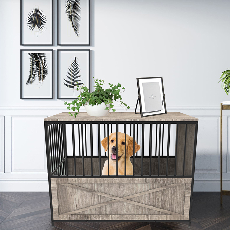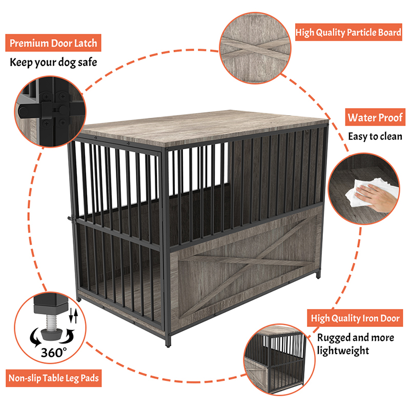 1.结构坚固:家具式狗笼选用实木和防锈金属框架,防啃咬设计经得起活泼好动的宠物长期使用。