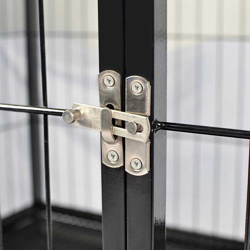 1.双重安全保护:金属狗笼采用双门设计(前门+顶门),开合顺畅,上锁安全,方便训练宠物进出,确保狗狗安全。